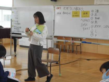 3年生になると、理科や社会科、総合的な学習の時間といった新しい学習が始まったり、音楽の授業では専科の先生に教えてもらったりします。その音楽の授業では、「春の小川」を学習していました。初めて聴いた後、歌を聴かせてもらいましたが、とても優しい歌声でした。音楽をつくる要素についてもどんどん理解していきます。春の様子を思い浮かべることで「曲想」という言葉を知りました。また「なんだかへびみたいに音が上がったり下がったりしているな」と「旋律」という言葉も学習しました。