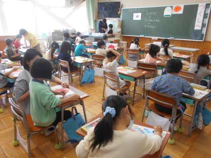 4月19日(水)1年生 図工 2組 公開日 2023/04/19 更新日 2023/04/19 できごと 楽しいおひさまは、児童の数ぶんあります。個性豊かで楽しいおひさまばかりです。画用紙いっぱいに自分のおひさまを表現していました。