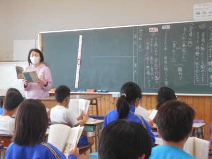 4月19日(水)5年生 国語 公開日 2023/04/19 更新日 2023/04/19 できごと 「なまえつけてよ」「ここでは」登場人物同士の関わりを読み取ることを学びます。そのために、今日は2人の登場人物の心情や人物像を想像して読んでいました。自分と似ているなあ、自分があこがれるタイプだなあ、読んでみようなどと、「ここでは」の学習が5年生にとって、ものの見方や考え方、人間関係などを広げるきっかけにもつながります。