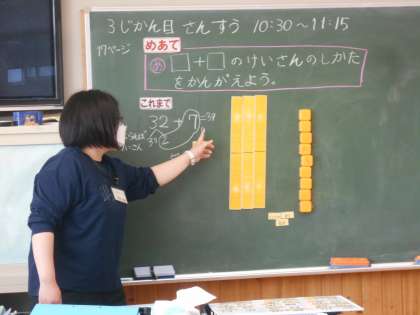 「2けたのたし算」の学習に入りました。「これまで」1年生の時に学習した「さくらんぼけいさん」を思い出していました。そして「ここでは」の学習でできるようになる「34+25」の計算にも挑戦してみようという気持ちになっていました。