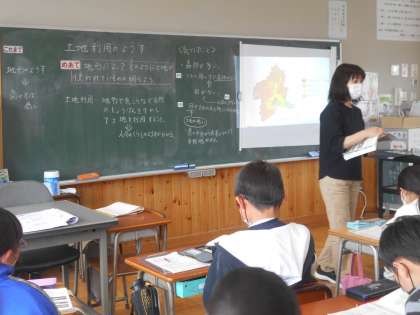 4月24日(月)4年生 社会科 公開日 2023/04/24 更新日 2023/04/24 できごと 藤岡市についての学習が始まっています。今日は、土地の使われ方について、実際に藤岡市の情報を見て、気付いたことを出し合っていました。土地の高さと使われ方の関係についても気付きました。また八高線についても話題に上がりました。、八高線など、交通については、このあと学習します。次の時間の学習へのワクワク感が増した時間でもありました。