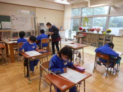 4月26日(水)ひまわり学級 公開日 2023/04/26 更新日 2023/04/26 できごと 6年生は算数で小数と整数のかけ算やわり算の学習中です。ある児童が約分の大切さに気付いて話していました。もう一人の児童は約分の難しさを話していました。先生が話しかけたのではありません。自分から進んでポイントとなることを話し、そして難しいから頑張ろうと意欲を奮い立たせていました。本当に感心しました。