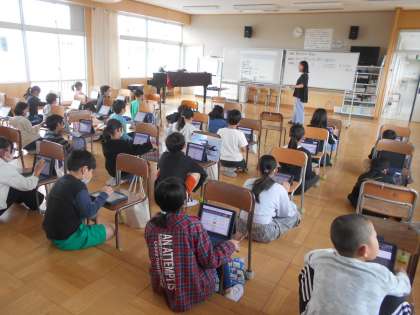 5月1日(月)5年生 音楽 公開日 2023/05/01 更新日 2023/05/01 できごと 「こいのぼり」5年生が知っている2曲を比較しながら聞いていました。音楽のポイント「速さ」「リズム」「曲の雰囲気」「音色」の4点について、聞き比べて自分の考えをタブレット上でまとめて共有していました。こうして比べることで、曲の特徴がつかみやすくなります。そしてそんな曲の特徴を感じながら合唱を楽しんでいます。