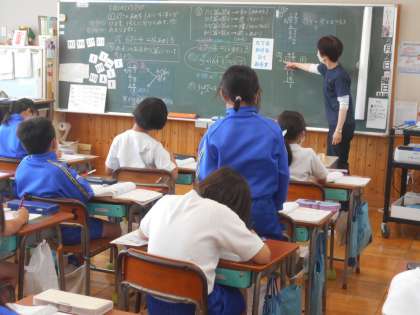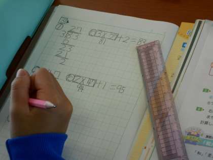 5月2日(火)4年生 算数2 公開日 2023/05/02 更新日 2023/05/02 できごと 十の位の数が割りきれない場合のわり算の筆算を学習しています。1組では今日、答えを出した後のたしかめ算を学習していました。答えがあっているかなあと確かめながら丁寧に正確に計算する力がつくのは言うまでもありませんが、「ここでは」計算が正しくできた!喜びを味わえる時間でもあります。