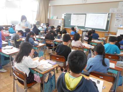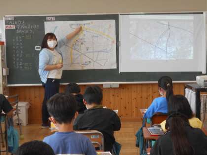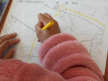 5月2日(火)3年生 社会科 公開日 2023/05/02 更新日 2023/05/02 できごと 「学校のまわりを調べよう」ちょうど教室では、小野小学校周辺の大きな道路に色を塗っていました。「ここでは」学校のまわりの様子について知ったり、方位や地図記号を学んだり、地図の読み取り方を学んだりします。そんな学習を通して、小野の地域のことをさらにどんどん知り、このあとの学習(社会科だけでなく総合的な学習の時間の「小野のたから」地域学習にも)につなげてほしいです。