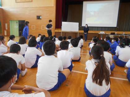 5月2日(火)4年生チノービオトープ環境学習の事前学習 2 公開日 2023/05/02 更新日 2023/05/02 できごと ビオトープの特徴や生き物が集まる仕掛けなどを丁寧に教えていただき、実際に自分の目で見てみたい!とワクワク期待感でいっぱいになりました。ビオトープとは「地域の生き物が暮らす場所」という意味があるそうです。チノーさんのビオトープは「小野のたから」であり、ビオトープの生き物も「小野のたから」です。こんな素晴らしい「たから」が身近にあることもしっかり学んでいきます。