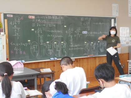 わり算の筆算では、十の位がわりきれない時の計算の仕方を「これまで」考えてきました。そして今日は、商の一の位が0になる計算などいろいろなわり算の筆算の仕方を身に付けています。「これまで」身に付けてきた計算方法をヒントにすれば、どんな新しい計算が出てきても「できる!」喜びや「挑戦してみるぞ!」楽しさを毎日の授業のなかでいつも味わっています。