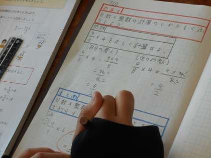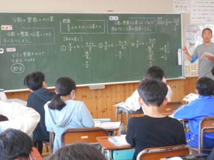 5月9日(火)6年生 算数 公開日 2023/05/09 更新日 2023/05/09 できごと 「分数と整数のかけ算・わり算」の学習に入りました。今日はそのかけ算の計算の仕方の工夫について、計算の途中で約分をする考え方のよさを学んでいました。より速く、正確に計算することが求められます。いろいろな計算の仕方をこれまでも身に付けてきましたが、今日学習したことは、かなりこのあとの学習でも役に立つと思います。どんどんたくさん計算にチャレンジして、しっかり身に付けてほしいと思います。