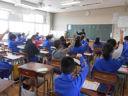 5月10日(水)6年生の主体的に学ぶ姿 公開日 2023/05/10 更新日 2023/05/10 できごと 教壇に立っているのは先生ではありません。児童です! 今日は、担当が出張のために出された課題について、「ミニ先生」を中心に学級全体でどんどん学習を進めていました。日頃の学ぶ姿があらわれています。そして、学び方がしっかり身に付いていることが分かります。素晴らしいです。
