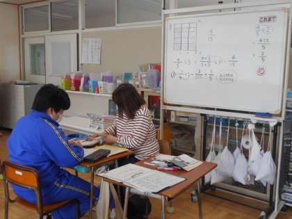 1組では6年生が算数を学習していました。ノートに丁寧に問題を写すことができていたので、教科書の問題にも丁寧に集中して考えることができました。
