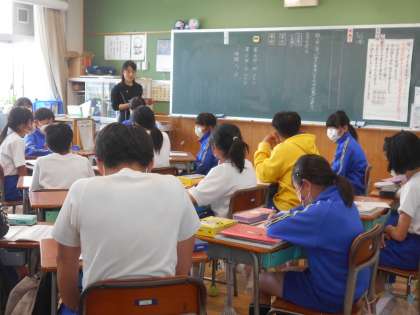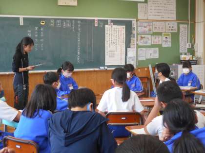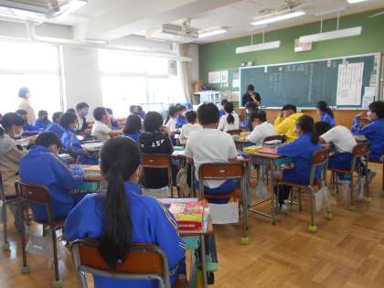 5月12日(金)6年生 国語 公開日 2023/05/12 更新日 2023/05/12 できごと 「聞いて、考えを深めよう」の学習です。「ここでは」話題について賛成か反対かの立場をはっきりさせて意見を出し合う場面を例に、話の聞き方や自分の考えをまとめたり深めたりすることを学習します。また、理由や事例の重要性も学びます。6年生になると、話合いの場面で活躍することが、学級、学年、学校、そして地域にも広がります。ここで学習したことがそんな場で生かされていくとよいです。