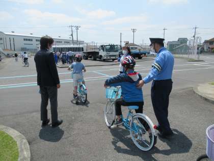 安全な自転車の運転について説明をしていただいたり、実際に自転車でコースを走ったりするなどして、安全な運転の仕方を学ぶことができました。最後には、修了証を交付していただきました。