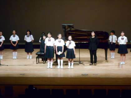 この日、高崎の群馬音楽センターで開催されたイベントに合唱部(4〜6年生)がゲスト出演しました。小野小の大先輩であるシンガーソングライター理子さんからの依頼で、ステージ発表し、2曲歌いました。うち一曲は、理子さんが母校である小野小のために贈っていただいた曲「心に咲く花」で、今では小野小だけではなく国内多くの学校で愛されている歌です。