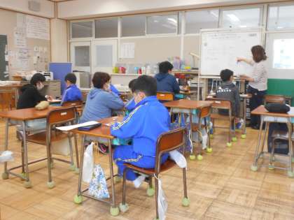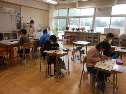 1組では算数を、2組では国語を学習していました。特に2年生が算数の計算を一生懸命考え、「できた!」と嬉しそうに先生に報告している姿がとても印象的でした。2年生になって、どんどん計算ができるようになっており感心しています。