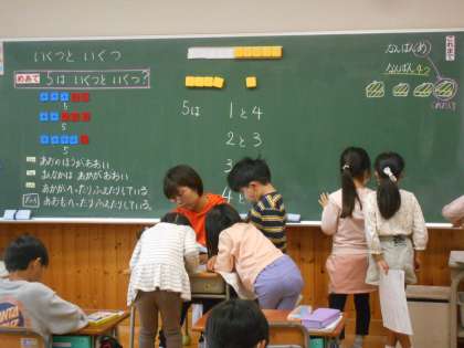 5月15日(月)1年生 算数 公開日 2023/05/15 更新日 2023/05/15 できごと 2時間目はどの学級も算数で「いくつといくつ」を学習していました。今日は「5はいくつといくつ?」おはじきやブロックを使って考えました。このようにブロックやおはじきを使って考えてみると、何かに気付くことがあるようです。これからも、このような気付きや発見を大切にしてほしいと思います。「このあとは」の学習で活躍するはずです。