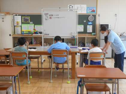 どの学年の児童も算数の学習をしていました。とても集中して先生の話や動画に耳を傾けていました。