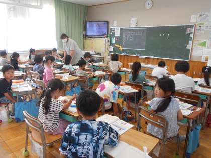 6月5日(月)1年生 算数 公開日 2023/06/05 更新日 2023/06/05 できごと 「あわせて いくつ ふえると いくつ」です。「これまで」に、「あわせて みんなで ぜんぶで」はたし算であることを学習しています。ちょうど教室では、そのたし算の計算に挑戦していました。先生からたくさん○をもらっていました。