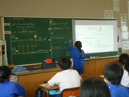 6月5日(月)5年生 算数 公開日 2023/06/05 更新日 2023/06/05 できごと 体積の学習では、立方メートルと立方センチメートルの関係について学習しています。今日の問題に挑戦しますが、ただ計算するだけではなく、きちんとそこ答えに至るまでの理由を説明しています。「これまで」学習してきたポイントが大活躍していました。