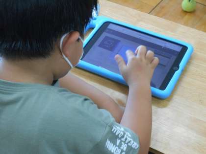 6月7日(水)1年生 はじめての「タブレット」 公開日 2023/06/07 更新日 2023/06/07 できごと 今日は、1年生各学級で、タブレットの使い方を学びました。ベネッセのICTサポーターさんに、タブレットの持ち方から始まり、学習で使用するアプリの起動の仕方までを教えていただきました。指示をよく聞いて、言われたとおりに画面が変わると嬉しそうです。