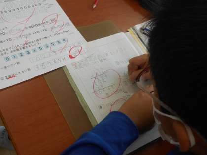 4年生の「大きな数」の学習では、3けた×3けたのかけ算の筆算の仕方を考えていました。どんなに数字の桁が増えても、一の位から順番に計算する。このように大切なことは変わりません。そしてとても一生懸命計算を頑張っている姿を見て先生が誉めていました。どんどんやる気を出して計算を頑張っています。