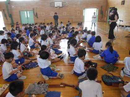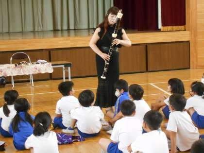 6月9日(金)3年生 リコーダー講習会 公開日 2023/06/09 更新日 2023/06/09 できごと 本日の5時間目、3年生は、東京リコーダー協会より講師の先生にご来校いただき、標記講習会を実施しました。様々な種類のリコーダーを紹介していただいたり、リコーダーのつくりや歴史、音色について教えていただき、リコーダーのことが好きになった3年生です。実際に音の出し方も教えていただきました。 いよいよ音楽の授業では、はじめてのリコーダー演奏が始まります。楽しみです。