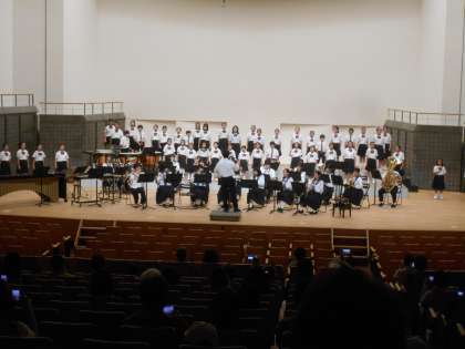 6月10日(土)合唱部の活躍 公開日 2023/06/12 更新日 2023/06/12 できごと この日、合唱部は、みかぼみらい館で行われた小野中学校吹奏楽部の定期演奏会にゲスト出演し、「Believe」を手話付きで合唱しました。中学生の演奏ともバッチリあったコラボ演奏で、観客席からは大きな拍手がなりやみませんでした。聴いている人たちに感動を与えるような心のこもった演奏はとても素晴らしかったです。これからも多くの人たちに心を届けてほしいと願います。