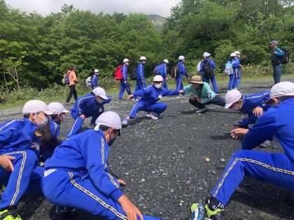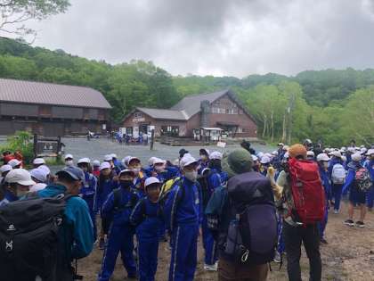 6月13日(火)5年生 鳩待峠にて 公開日 2023/06/13 更新日 2023/06/13 できごと 順調に行程が進んでいるようです。予定通り9時過ぎに鳩待峠に着いたと校長先生より電話連絡がありました。ガイドさんと「こんにちは!よろしくおねがいします!」をし、身支度を調えて、準備運動をして、いよいよ鳩待峠を出発します。