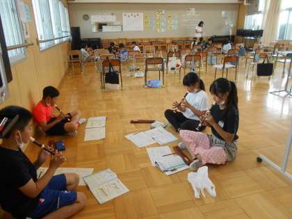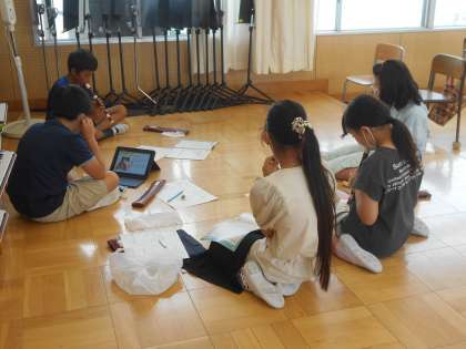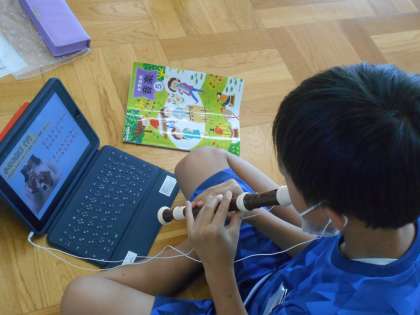6月19日(月)5年生 音楽 公開日 2023/06/19 更新日 2023/06/19 できごと 「小さな約束」を練習していました。「ここでは」リコーダーを友達と一緒に演奏し、みんなの音が重なり合う響きを感じ取りながら演奏することを学びます。みんなで合わせた音がひとつのきれいな音になるのを感じられるとよいです。今は練習段階です。グループの友達と合わせたり、タブレット上の練習動画を見ながら練習したり、それぞれが目標をもってがんばっていました。