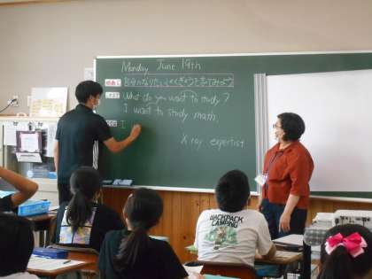 「Unit 3 What do you want to study?」の学習です。「ここでは」自分の夢(なりたい職業)とそのために頑張りたい教科について英語でスピーチができるようになります。また、教科や職業について英語での言い方も知ることができます。それらを友達とのやり取りを通して学ぶことができるなんて素晴らしいことです。夢いっぱいあふれるスピーチを楽しみにしています。