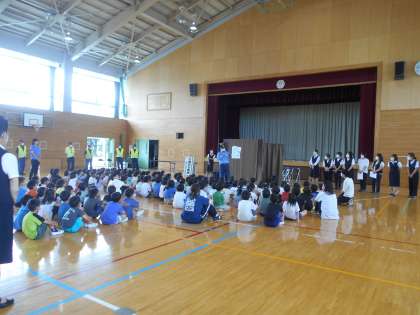 3時間目に、1・2年生合同で、交通安全教室を実施しました。藤岡警察署、藤岡交通安全協会からたくさんの方々にご来校いただき、楽しく、分かりやすく、交通安全について教えていただきました。特に、横断歩道の安全な渡り方や交通ルールのことを中心に教えていただき、児童の交通安全に対する意識が向上しました。なお、講師の方々から、元気がよく、反応がよい1、2年生のことをたくさん誉めていただきました。学校の中でも外でも、いつでも元気、健康で過ごしてほしい!本当に心からそう願っています。