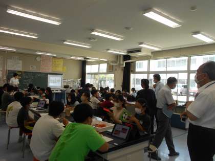 前半は、各教室の授業の様子を見ていただきました。小野の目指す姿である「夢に向かってかがやく子」の実現に向けて、各学級で児童が生き生きと学習に取り組む様子を見ていただきました。参観された方々から、そんな児童の姿に、たくさんのお誉めの言葉をいただきました。