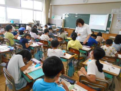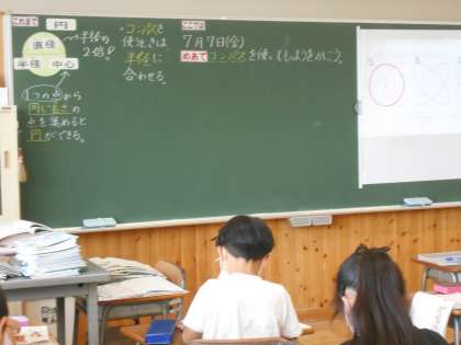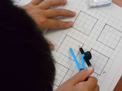 7月7日(金)3年生 算数 公開日 2023/07/07 更新日 2023/07/07 できごと 「円と球」の学習では、コンパスが使えるようになった3年生です。今日は、円を使った模様をコンパスを使ってかいていました。いろいろな種類の模様をかきたくて、一生懸命取り組んでいました。コンパスの使い方が上手になっています。針はどこにさせばいいかな?ずれないようにするのはむずかしいな!でも、できたときは嬉しそうです。