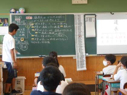 7月11日(火)6年生 社会科 公開日 2023/07/11 更新日 2023/07/11 できごと 平安時代の学習に入っています。今日は、藤原氏がどうして力をつけていたのか?を考えていました。様々な資料(家系図、この時代の天皇の名前と年齢の表など)をもとに考え、発表し合って皆で考えていました。6年生の児童にとっては、現在の私たちとは大きな違いがあり、驚くことがいくつも出てきます。また今につながることも見えてくるでしょう。6年生はいつも、そんな歴史の学習を楽しみながら学んでいます。