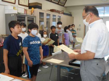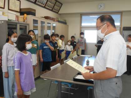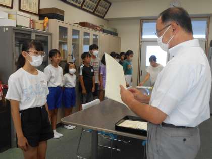 本日の20分休みに校長室で表彰式を行いました。このような児童の活躍に拍手をおくることができるのは非常に嬉しいことです。おめでとうございました。