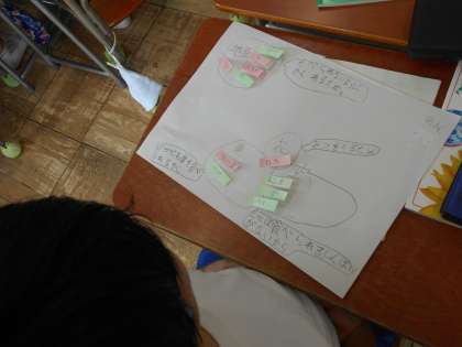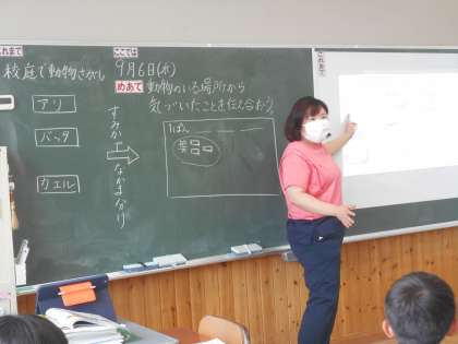 「動物のすみか」の学習に入りました。「ここでは」身の周りの生き物が周辺の環境と関わって生きていることを学習します。3年生は実際に校庭に行って見付けた生き物とその場所についてまとめ、気付いたことを発表しあっていました。「てんとうむしやバッタは草にいたよ。いつでも草が食べられるからだと思う!」「とんぼやちょうちょは空を飛んでいたよ。飛んでいれば食べられる心配がないからだと思う!」3年生らしい発見です。生き物たちはその場所で何をしているのかな?「ここでは」の学習に対する意欲は100点満点です。