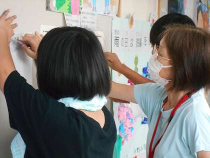 6年生の図工では、おのハンモックのボランティアの方にいつもお世話になっています。6年生がフロッタージュしているところで児童をサポートしてくださっていました。「いいアイデアだね」と誉めてくださっていて、児童の表現意欲が高まります。また、フロッタージュしているときに、手で紙を支えてもらったことで、濃くはっきりと強さの伝わるような模様にできて喜んでいる児童がいました。いつもありがとうございます。