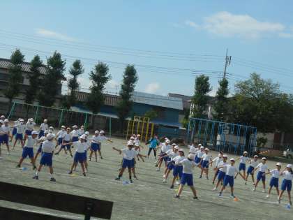 9月12日(火)3・4年生合同体育 公開日 2023/09/12 更新日 2023/09/12 できごと 今朝は、3、4年生が合同で体育をしました。ただし、段々太陽が出てきて、熱中症指数が上がったので、すぐに教室に入り、水分をたっぷりとって涼みながら、動画を見て表現の練習をしていました。座っていても、思わず体は動いている児童でした。