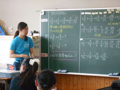 今日は帯分数のたし算とひき算の計算の仕方を学習しています。今日のめあては「どのように計算すればよいか?」きちんと自分の考える計算の仕方を説明できるようにすることです。ちょうど教室では、ある児童がどうしてその考えになったのか?分かりやすく説明していました。