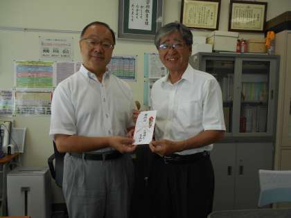 9月25日(月)小野地区の区長会の皆様ありがとうございます。 公開日 2023/09/25 更新日 2023/09/25 できごと 本日、小野地区の区長会から会長様がご来校くださり、子供たちの教育活動のためにと、ご寄付いただきました。ありがとうございました。大切に使わせていただきます。