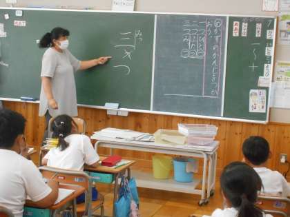 9月29日(金)1年生 国語 公開日 2023/09/29 更新日 2023/09/29 できごと 「かずとかんじ」の学習です。1から10までの数の読み方通りにはいかないのが、「ここでは」学習する数え方です。でも、児童は日々の生活のなかでいろいろな物を数える経験をしているので、スムーズに学習が進められていました。そして「このあとは」数える対象によって読み方が変わることを学びます。ことばの学習の楽しさを味わっています。