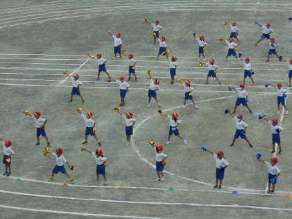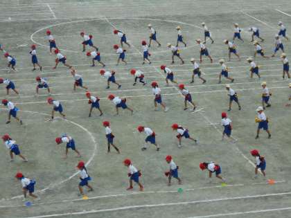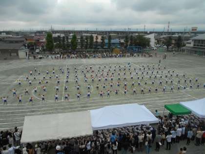 9月30日(土)低学年の部 合同表現1 公開日 2023/09/30 更新日 2023/09/30 できごと 1・2年生は合同で「新時代」を表現しました。特に1年生にとっては初めての運動会。みんな楽しそうにニコニコ笑顔でキラキラかがやいていました。おうちでもたくさん練習していたようですね。