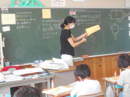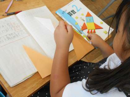 10月3日(火)2年生 算数 公開日 2023/10/03 更新日 2023/10/03 できごと 長方形と正方形の紙を切っていました。どんな形ができたかな?「正方形は簡単だけど、長方形はむずかしいな」「あれ!三角定規みたい!」どんどん児童の口から気付いたことが出てきます。それがまずは「ここでは」しっかり学んでほしい知識や技能にむすびつきます。
