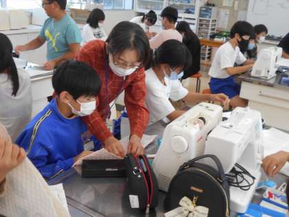 10月3日(火)おのハンモックボランティア(6年生家庭科) 公開日 2023/10/03 更新日 2023/10/03 できごと 今日から6年生の家庭科のミシン使用時には、おのハンモックのボランティアさんが入ってくださいます。今日は午前中に2クラスお世話になりました。安全にミシンを使用したり縫ったりすること、手際よく上手に製作すること、色々な面で6年生の学習をサポートしてくださり、ありがとうございます。 小野の子供たちは、こうして、地域の方々に応援していただきながら学習しています。