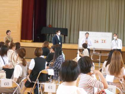 子供たちが健康診断を受けているあいだ、保護者を対象に「子育て講座」を実施しました。群馬県教育委員会西部教育事務所より講師の方々をお迎えし、和やかな雰囲気で時間が流れました。