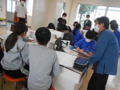 10月10日(火)6年生 家庭科 おのハンモック協力(教育委員訪問) 公開日 2023/10/10 更新日 2023/10/10 できごと 「思いを形に 生活を豊かに」でミシンを使ってバッグの製作中です。おのハンモックのボランティアさんに授業に入っていただき、児童の学習をサポートしていただいている授業を見ていただきました。このように、小野の子供たちの学びの充実のために地域の皆様が力をくださっていること、教育委員の皆様からのお言葉から、あらためて感謝の気持ちを強くしました。
