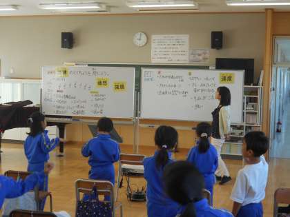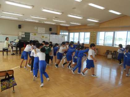 10月13日(金)3年生 音楽 公開日 2023/10/13 更新日 2023/10/13 できごと 「メヌエット」を聴き、感じたことや気付いたことを交流していました。「ここでは」曲の感じを味わって聴いたり、演奏したりすることを学習します。「音楽をしっかりと心できくんだな」と学習しました。そして授業の最後には児童が大好きな「じゃんけんれっしゃ」。じゃんけん列車でも、先生の伴奏をよく聴き、ピアノの音の感じに合わせて動きます。そして、友達とそれを合わせながら動くことの楽しさも味わっていました。