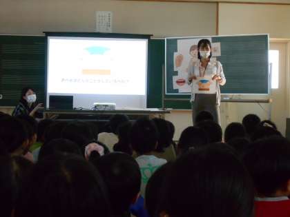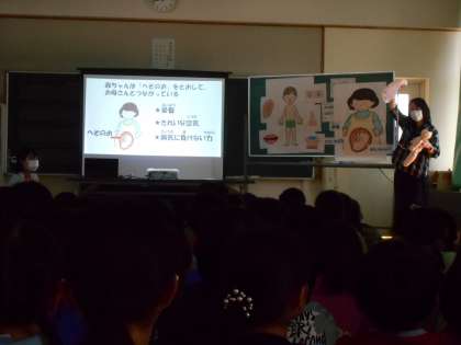 10月13日(金)2年生 学活1 公開日 2023/10/13 更新日 2023/10/13 できごと 3時間目、2年生は、保健室と連携、そしてもうすぐ出産を控えている職員の協力のもと、学活「命の誕生〜おへそのひみつ〜」の授業を実施しました。また保健室からは、先週から保健室で実習をしている教育実習生(本校出身)も一緒に授業を進めました。
