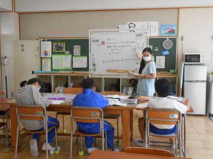1組では、2年生が国語「お手紙」のある場面を音読劇で表していました。演じてみることで、より場面を想像しやすくなっています。2組では、4年生が算数で「変わり方」の学習をしていました。きまりを式に表して考えるよさを学んできており、自分の力でしっかり考えている姿に感心しました。