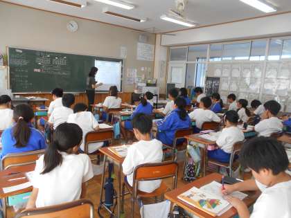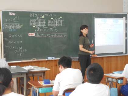 「2つの量の変わり方」2つの水槽から違うポンプで水を抜いていくとどちらが先に水がなくなるか?図で考えてみたけれど・・・もっと分かりやすい考え方はないのかな?「今日はグラフで調べてみよう!」となりました。図表やグラフ、式。それぞれの目的に応じていろいろな考え方があり、適切に選択することも学んでいますね。
