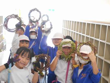 作ったリースを一生懸命説明してくれました。笑顔いっぱいです。